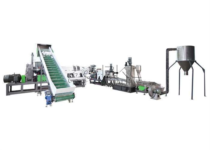 PE Plastic Zakken Plastic Korrelende Lijn met internationale geavanceerde recyclingstechnologie en gecombineerd met de daadwerkelijke toepassingsvoorwaarde. Dit plastiek die recyclingsmachine pelletiseren is ontwerp specialiseert zich voor het recycling van de gewassen plastic PE film, zoals PE plastic zakken, plastic verpakkingsfilms, plastic het winkelen zakken, plastic handtas enz.
